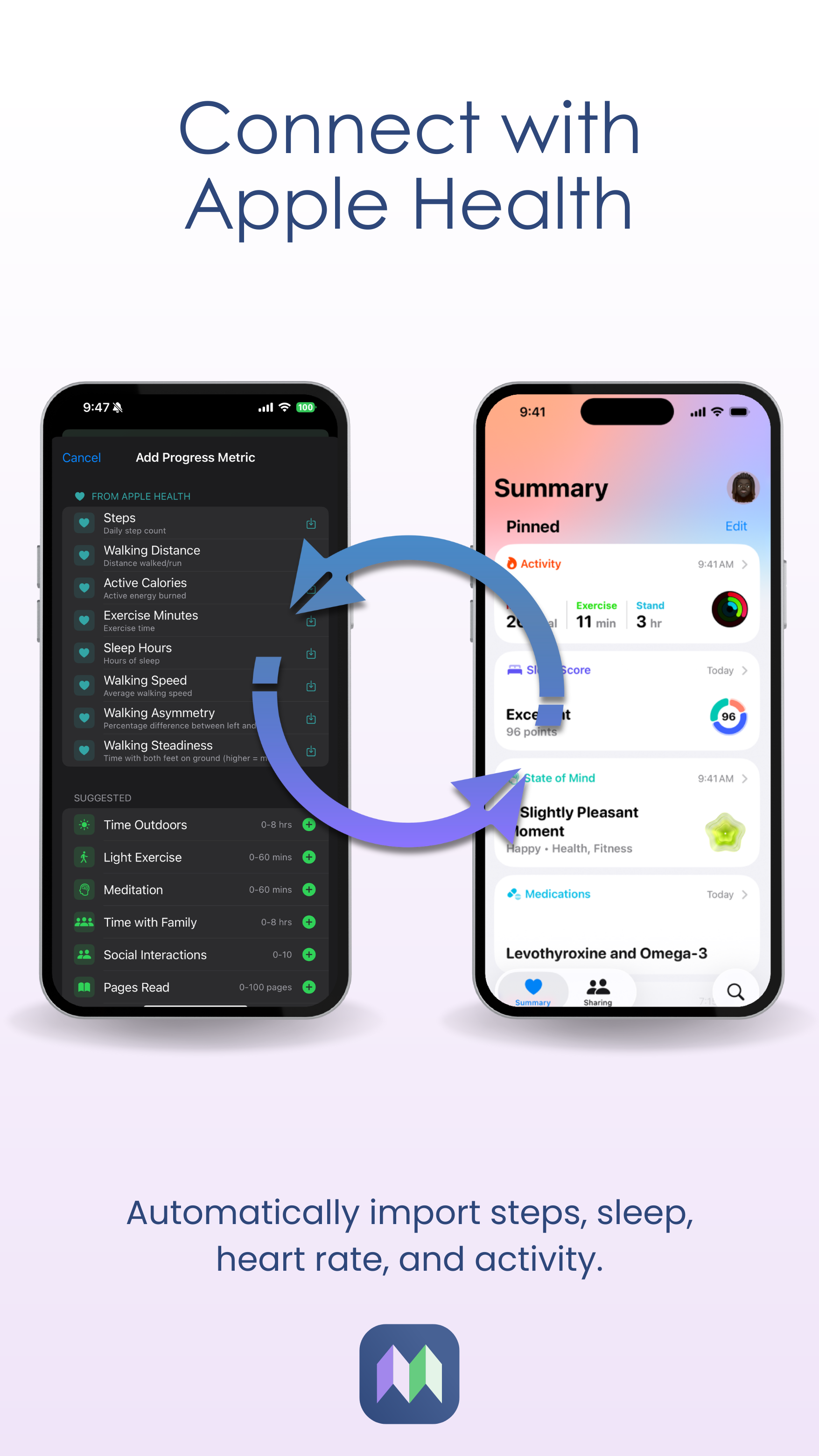 Connect data from Apple Health to view a full picture of your recovery without any extra effort.