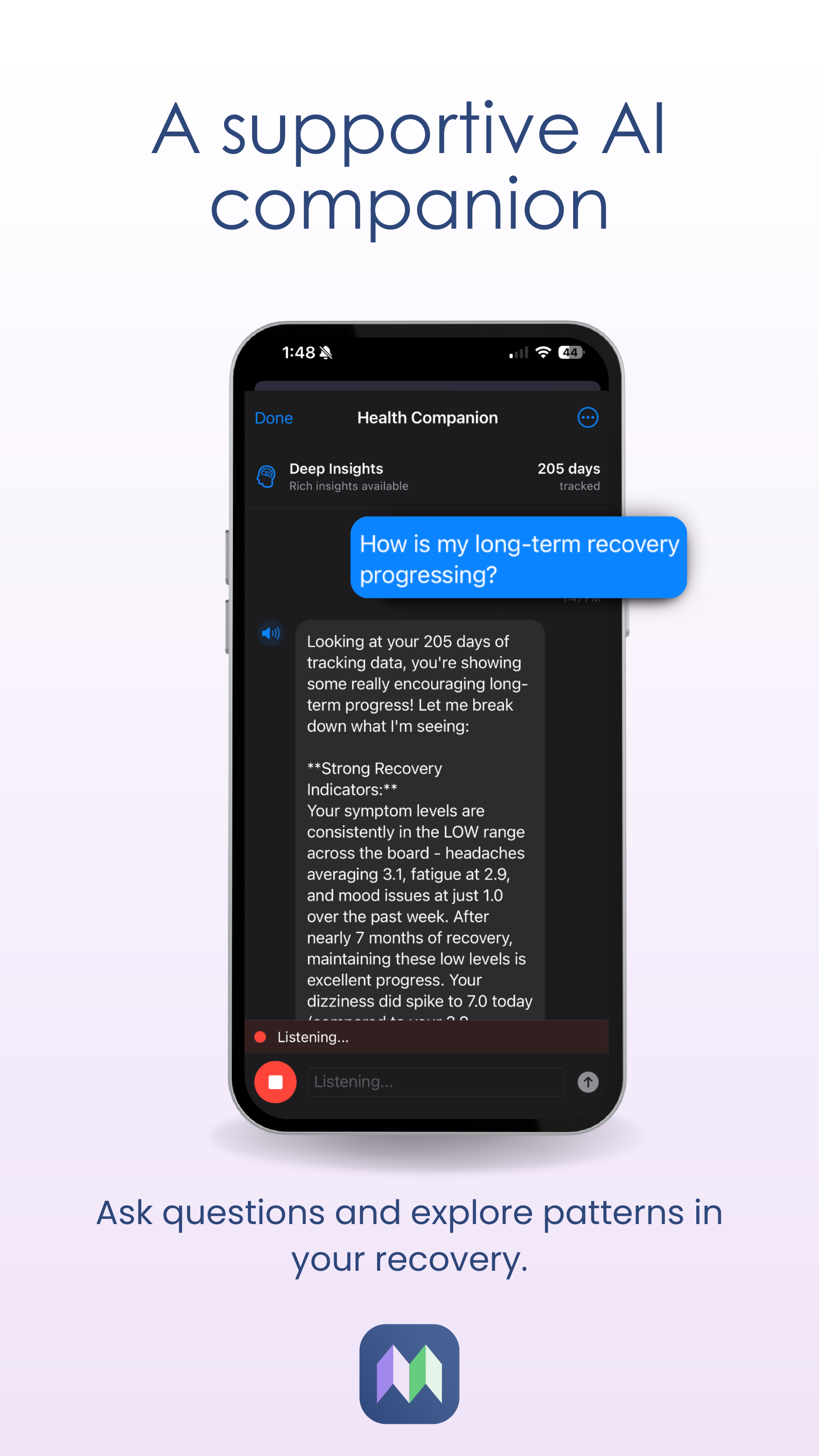 MindMap helps people recovering from concussions and brain injuries track symptoms, recognize patterns, and take an active role in their healing journey.