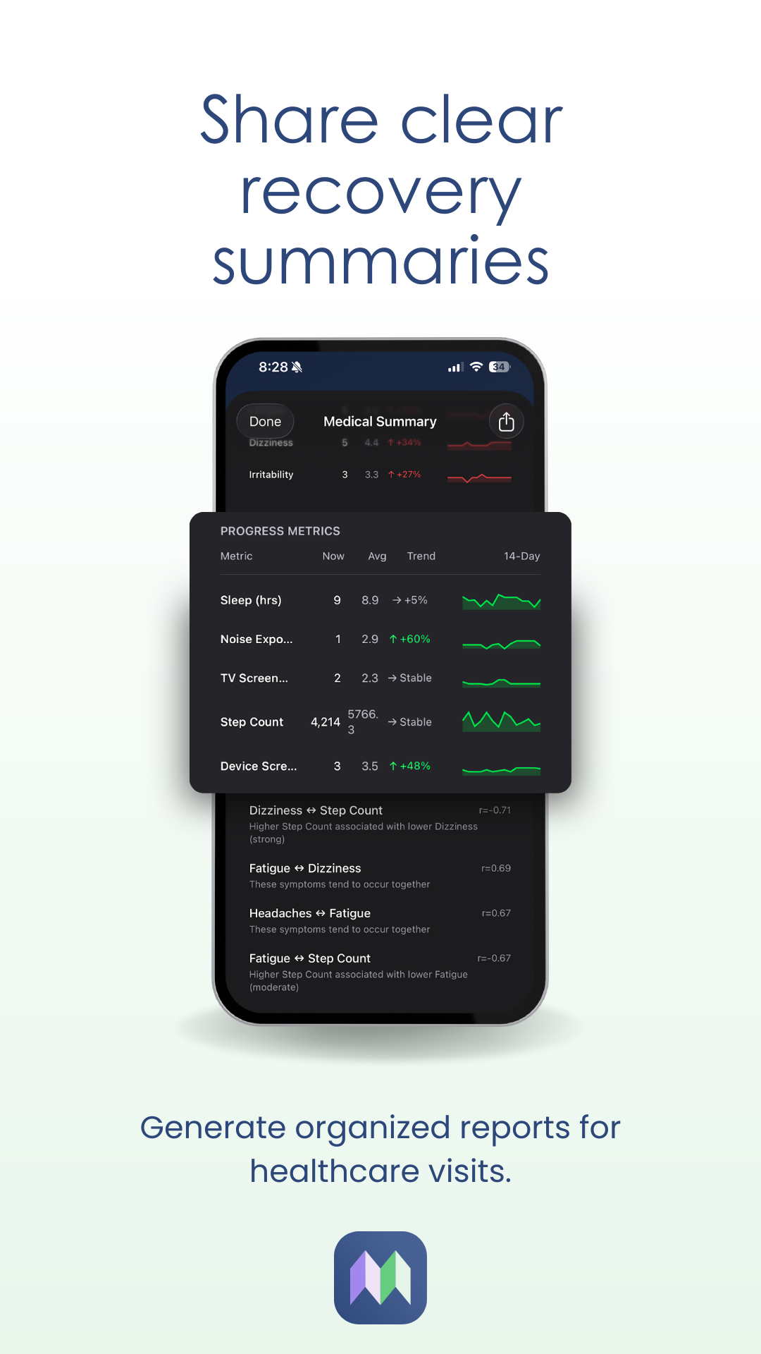 With guidance a leading brain injury expert, MindMap’s symptom tracking and pattern-recognition tools provide a clear path to progress.